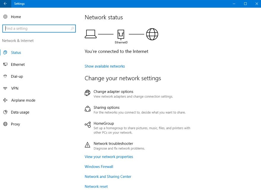 1. Melalui Network and Internet