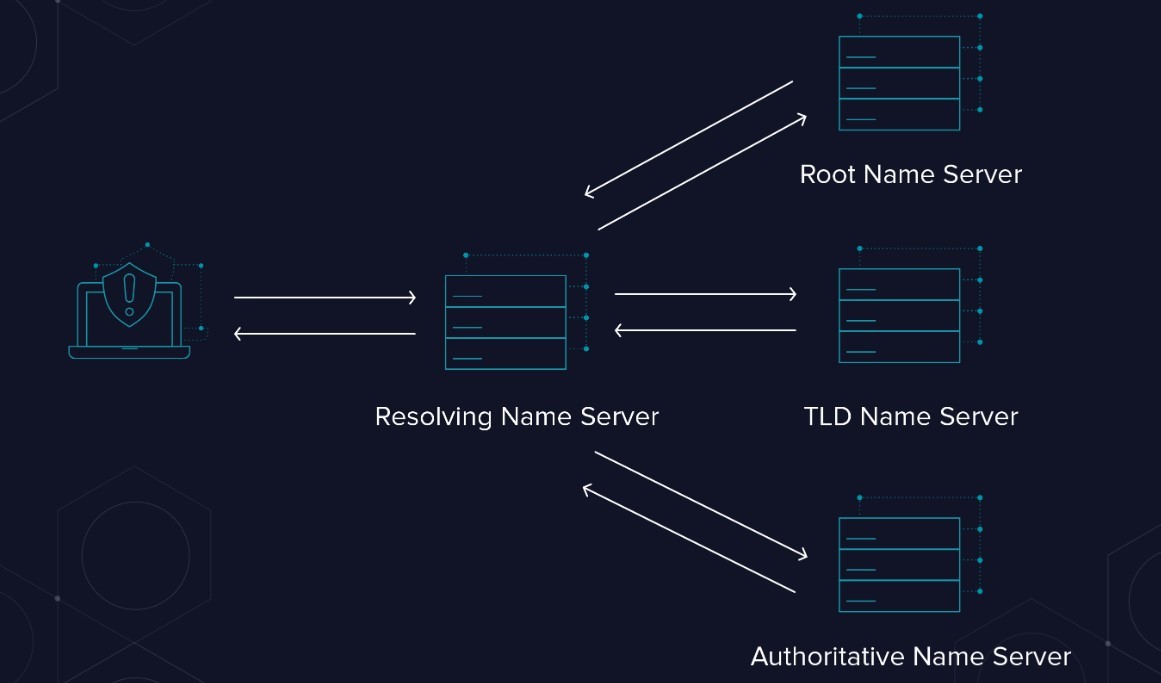 Saat Kalian mengetikkan alamat domain ke dalam web browser, komputer akan mengirimkan permintaan DNS ke DNS resolver yang terhubung dengannya. DNS resolver akan mencari tahu alamat IP yang sesuai dengan domain tersebut dengan mengirimkan permintaan ke Root Nameserver.
