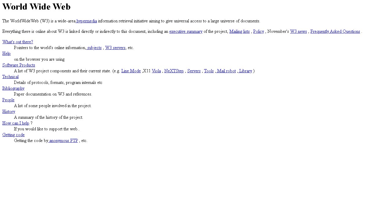 Website yang pertama dirilis pada saat itu hanya menampilkan teks sederhana tanpa variasi font, video, atau gambar. Namun, website tersebut masih ada sampai sekarang dan dapat diakses melalui URL http://info.cern.ch/hypertext/WWW/TheProject.html.